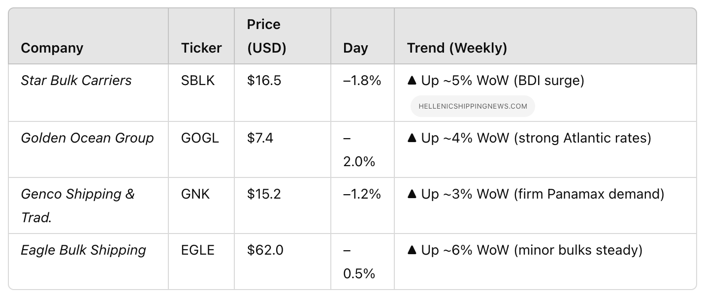 Market observers note that shipping shares broadly outperformed the market earlier this year, but are now selectively moving as sector fundamentals diverge. Dry bulk shares trend up on commodities demand, tankers remain near multi-year highs despite short-term dips, and container lines are navigating a soft landing from peak profits.